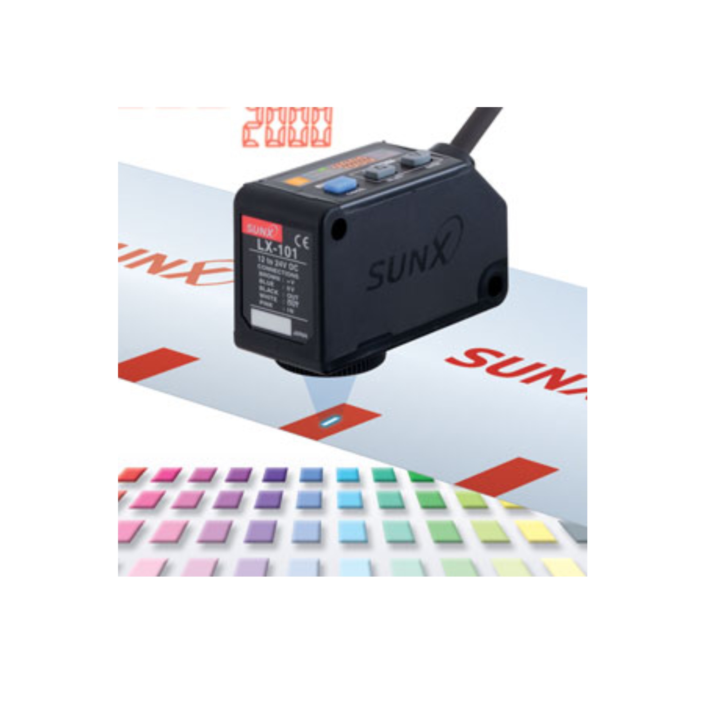 Sensor de color y contraste inteligente LX-100 10-30VDC: Representa la combinación perfecta de un conversor A/D de alta resolución (12 bits) y la función de selección automática de color y del led emisor. Posee dos modos de trabajo seleccionables: Modo color y modo marca.